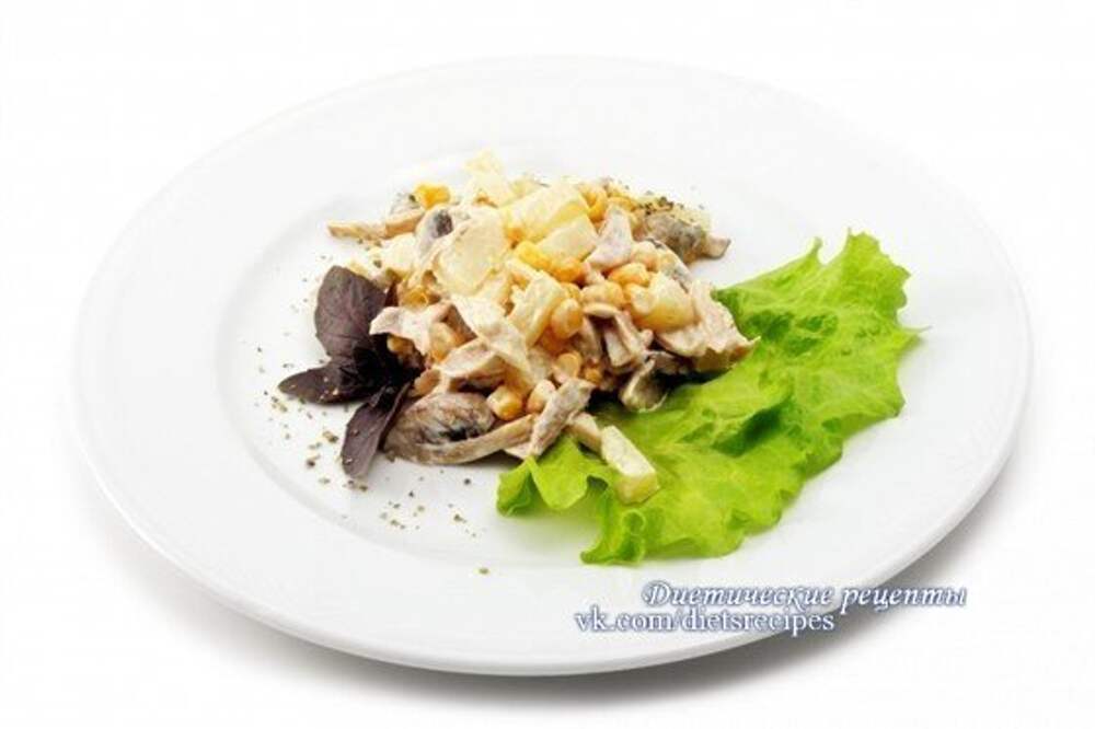 Салат из курицы с ананасами и кукурузой